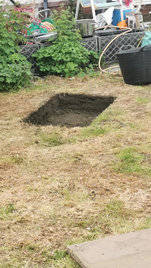 We have a large slab and have dug out a 6" deep hole to create a base that the slab will sit on ( and that the fountain will go on). The fountain base is only 12/14" D maybe but the slab is much bigger.