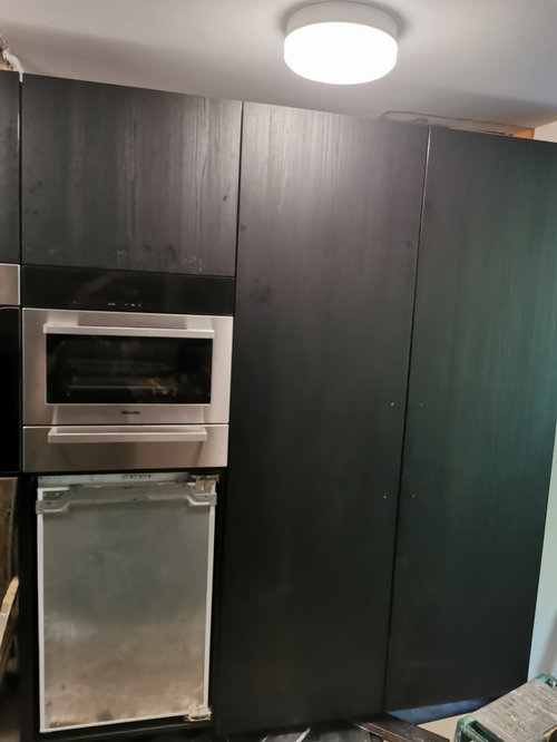 if you do go down the horizontal handle option, just be careful with corners and wall units next to tower units and walls as you don't want the door to swing open and then the handle hits/damages anything. you can get angle stops for blum and hettich hinges [don't know about other brands] that limit the opening to 90 degrees.