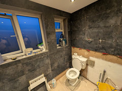 Hi all. My bathroom renovation is coming to an end but I'm still haven't figured out all the accessories yet. Above the long side of the bath I'm going to have a couple hooks for our sponges and on the left wall I'm going to have a shower caddy somewhere. On the right however, there are no plans to have anything.