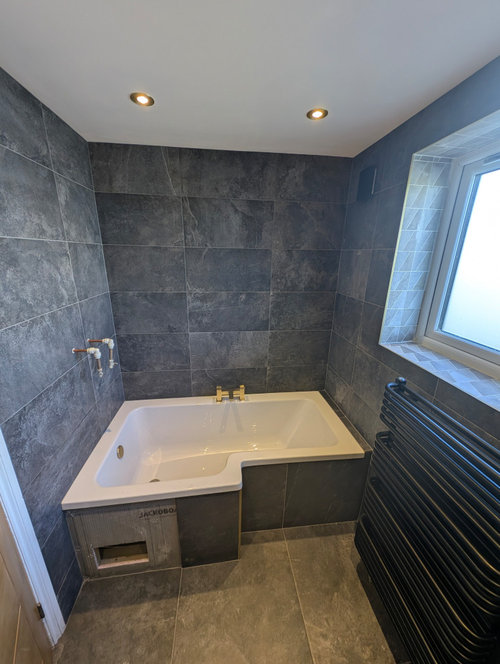 Initially I was going to have towel rails there but instead got the towel radiator. However, the towel radiator it quite close to the toilet so thinking it may be better to have the option of hanging towels where the bath is (though they may get wet with the shower).