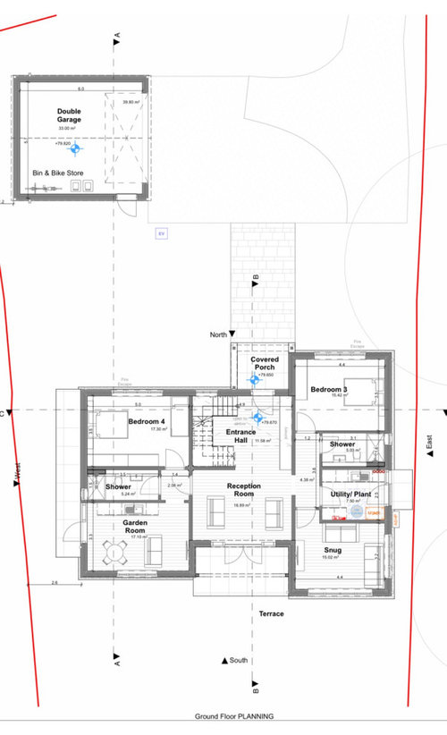I’m currently developing a new build upside-down house (living spaces and two main bedrooms are upstairs) and would love to get some feedback on the design. I’ve attached the current drawings and would really appreciate any suggestions for improvements.