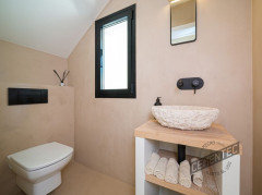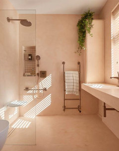 Microcement or limewash walls for that boutique finish.