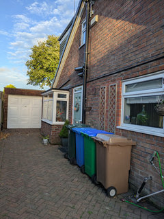 We are currently looking at updating our dormer bungalow. We were debating on moving but we are in a perfect location and the house is actually deceptively large. We are looking to get a kitchen extension to the rear of the house (we will knock down a large conservatory and replace it with a 6m x 7 m kitchen diner (if we get permission). My biggest issue with this house is kerb appeal. While it's not the ugliest house , I would like a refresh Initially I thought about rendering and adding black windows, but now I'm leaning towards lighter windows as the door is sage green. Im not sure where to start and how to make the house look a little nicer / updated. Any ideas?