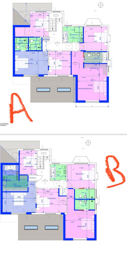 Hello, I know there are always good ideas given here. Wondering if you can help the new project. Please see my new ideas of the renovation proposal. There is a ground floor renovation and two options upstairs,Option A or B.
