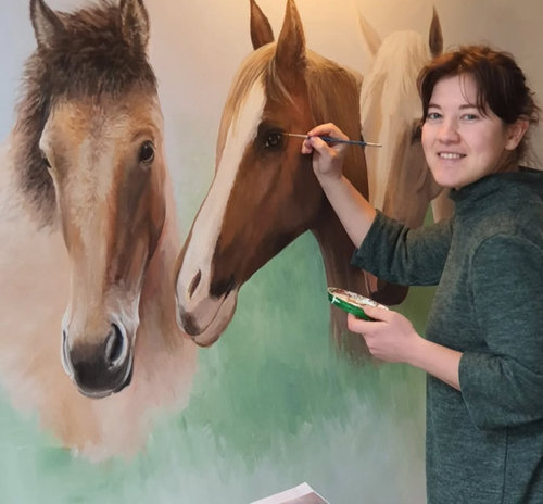 I specialize in creating custom wall murals, decorative plaster, and artistic finishes for interiors. From delicate nature-inspired wall paintings and realistic animal portraits, to textured plaster and tinted effects on furniture or panels — each piece is hand-painted and tailored to the space.