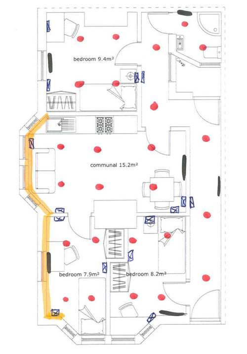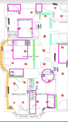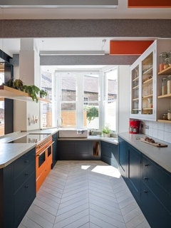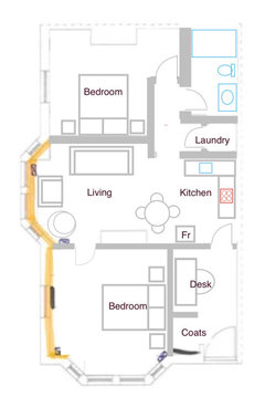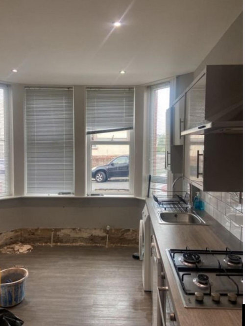 * Kitchen layout: I don't know how best to lay out the kitchen diner - I wonder if there's any clever ways to divide the space to allow for more work tops. The problem being the bay windows at the end which are super long - the cabinets would have to be built in front of them and I don't know if this is a big no no. However, this space feels underutilised so would like to do something with it!