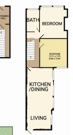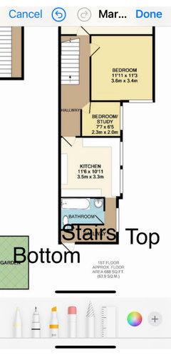 Please give me ideas on how to reconfigure this space. It’s a first floor Victorian flat. It has stairs behind the kitchen that lead to a small garden. Ideally I want to convert the loft to make a kitchen with roof terrace and living room and would like to put 3 bedrooms on the first floor. Can anyone advise on this? What do I do about the garden? I think it would be weird to have to access the garden through a bedroom. Is there an alternative? If this is not possible how do I make what is there better? I hate having to walk through the kitchen to get to the bathroom- it’s something that has always put me off a property (am I alone in this?)