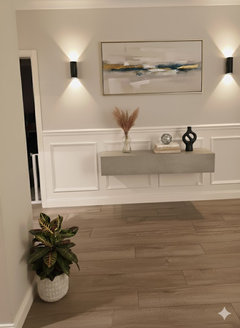 Comments (14)Hello nicnoll, Another idea could be to have a wall light that is all about the bulb! A few links to both ideas.... Copper is good too... Guessing you can have them pointing up or down for ones that don't have a moving hinge.. http://www.oldschoolelectric.com/vintage-light-bulbs/ http://www.industville.co.uk/collections/wall-sconce-bar-restaurant-lamps/products/vintage-barn-angled-brass-wall-lamp A ceiling light.. http://www.industville.co.uk/collections/ceiling-lights-lampshades/products/brooklyn-vintage-brass-cone-lampshade OR.. One other idea... have a rose with multi flex wires... centralised where the current one is.. Then choosing cable/flex and lengths.. run them along to where you want.. either along ceiling.. in loops with hooks to loop round and fix position, so then excess becomes a drop pendant to add something lovely.... Or you run them in loops across the ceiling to the opposite wall and have a wall light fitting but the electric cable comes from the one ceiling point. So less to do wiring wise.. Plus this makes for a very interesting bespoke installation.. with coloured flex cable running in loops along the hallway.. . : )) http://www.urbancottageindustries.com/historic-lighting/ceiling-roses/multiple-outlet-ceiling-roses/ceiling-rose-multiple-cable-flex-outlet-vintage-brass http://www.urbancottageindustries.com/historic-lighting/fabric-cable/twisted-lighting-flex/copper-fabric-lighting-flex-cable-twist...See MoreSave my sanity and choose a colour, please! Wall paint colour dilemma