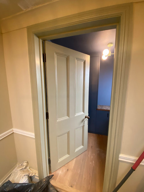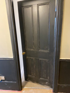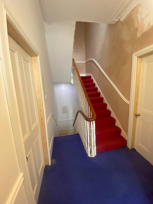 Comments (44)Paint the doors black matt and the fames cream add silver crome door furniture. Huge silver mirror above the covered radiator then add a runner of any colour you like and match it with the lamps and lighting. hey presto done....See More- last month