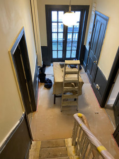 Comments (24)I must say I find the tall ones , a bit disproportionate to the rest , try it with one third off, (the top sheets) and lets see . I would then align the middle tall one(now reduced) to the bottom of the one next to it ,then I would also reduce the distance between all the frames to about 4" in between. Even if the display is not the whole length of the stairs, as long as the distance at the bottom of the stairs is the same as the distance at the top of the stairs, it will work,...See MoreTo panel or not?