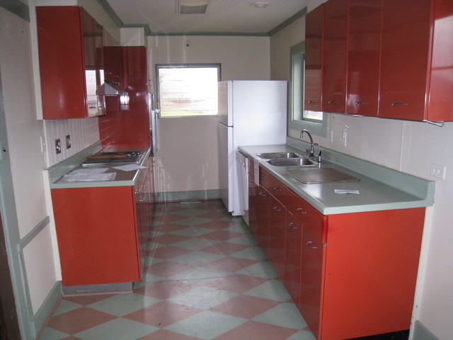 Retro vibe and red cabinets - funny that this is the "before" pic