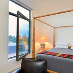 Goodwin expanded the upstairs bedrooms to the roofline — a trick that allowed him to keep the perimeter walls low so that the new second floor wouldn't overwhelm the original one-story structures.