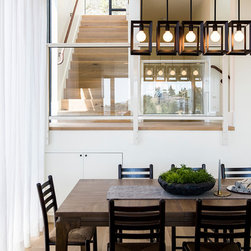 Exterior siding is the Hardie Artisan siding; Windows by Western Window Systems, glass guardrails by Feeney.