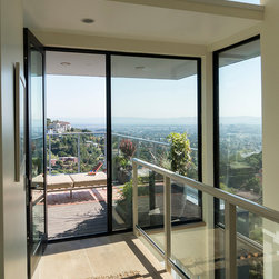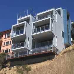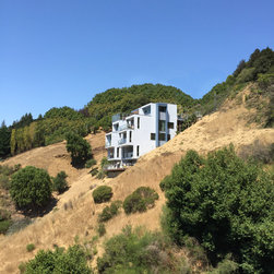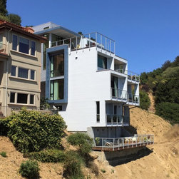 5 level home with 6 cantilevered decks with great views of the San Francisco Bay. The house was the 2016 Sunset Magazine Idea House. The house meets the Wildland Urban Interface requirements for fire resistance and is fully-fire sprinkled.