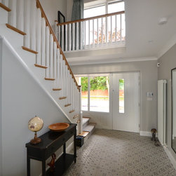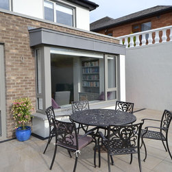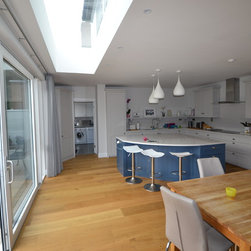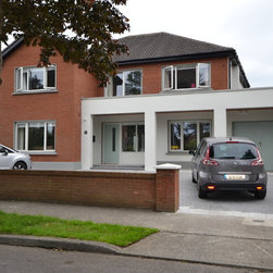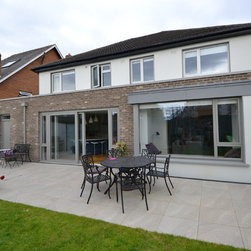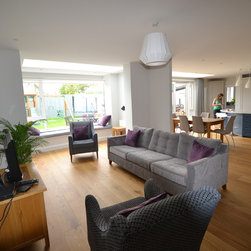 This project involved the addition of a new ground floor extension, along with the modernisation of the existing house and its front elevation. The new extension accommodates an open-plan family zone integrating kitchen, dining, and living areas, with a direct link to a utility space / boot room that opens onto the garden. The design incorporates varied window treatments across the façade to reflect the different internal functions, while creating a seamless connection between indoor and outdoor spaces. The result is a light-filled extension that enhances both functionality and flow.