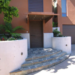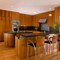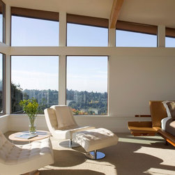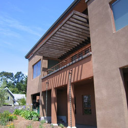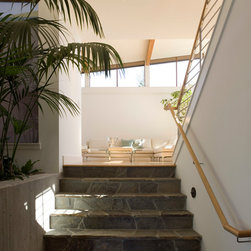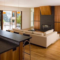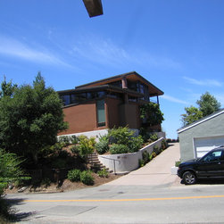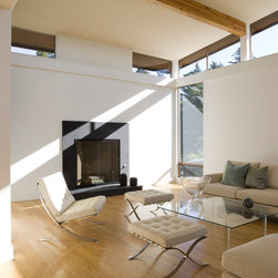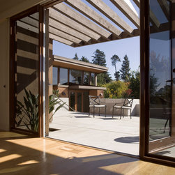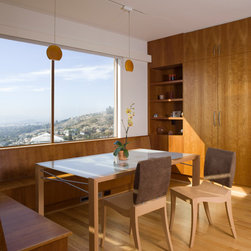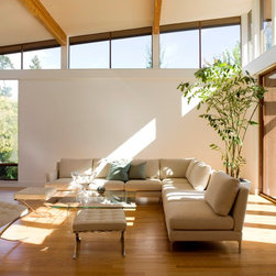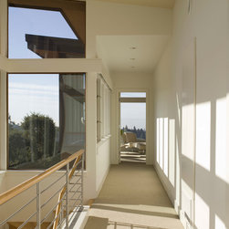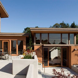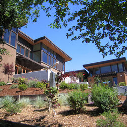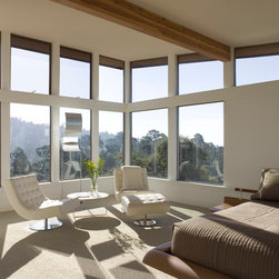Located on a heavily wood site on the Oakland Hills ridge overlooking San Francisco Bay, this modern four-bedroom home is designed to grow and adapt with the owners and their children. The house exterior meets the fire requirements for Wildland-Urban Interface (WUI) requirements for fire resistant construction.