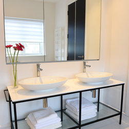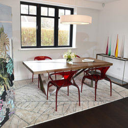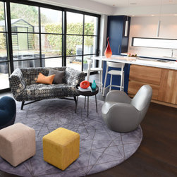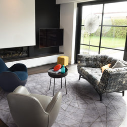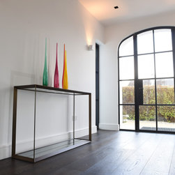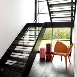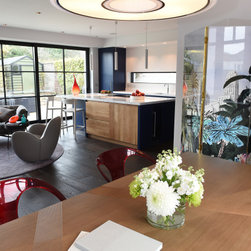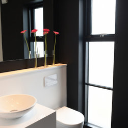 The architecture of this modern house has unique design features. The entrance foyer is bright and spacious with beautiful open frame stairs and large windows. The open-plan interior design combines the living room, dining room and kitchen providing an easy living with a stylish layout. The bathrooms and en-suites throughout the house complement the overall spacious feeling of the house.