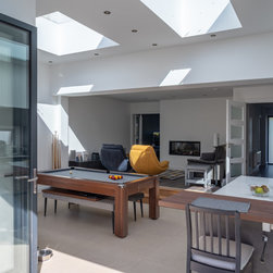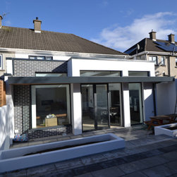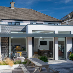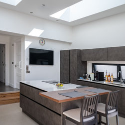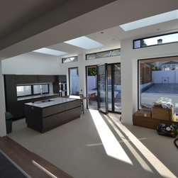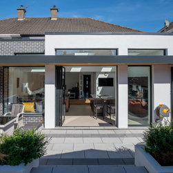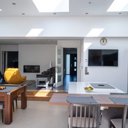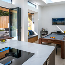 A rear extension and refurbishment of a south-facing semi-detached family home, designed to seamlessly connect indoor and outdoor living. The increased height of the new extension enhances the sense of space and floods the interior with natural light. A split-level open-plan layout defines distinct zones, giving each area its own character and purpose.