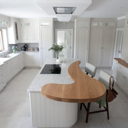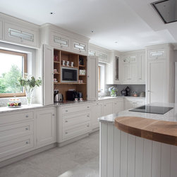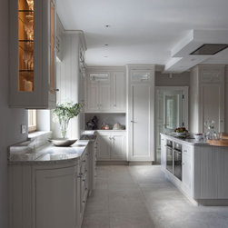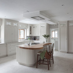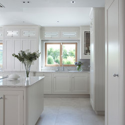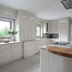 The traditional Irish style kitchen is reimagined, drawing on visual harmony and capitalizing on natural light—made possible by the beautiful detailing and elegant symmetry.