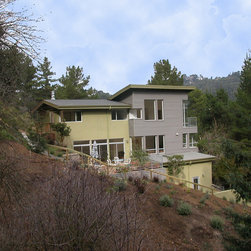 This house is a 4 story house that is built into a very steep up-hill site that had a flat area once the slope was conquered.