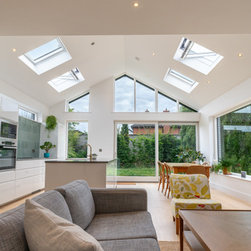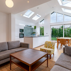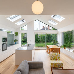 A double-height extension was added to this charming cottage in Killester, creating a bright, sun-filled open-plan space that captures natural light throughout the day as the sun moves around the house. Nestled within a mature, secluded garden, the design aimed to seamlessly connect the interior with the surrounding natural environment.