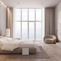 We are delighted to share our new project with you. This minimalistic bedroom boasts an ambiance of tranquility with its light-toned furnishings and panoramic window. The space features a soft, cozy armchair, complemented by gentle lighting fixtures. An unconventional wall panel evokes a sense of calm and coziness, creating an atmosphere that radiates peace and comfort. Area: 17 sq.m.