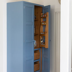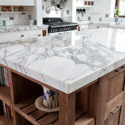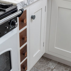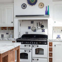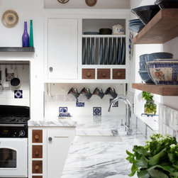 Crisp, clean traditional styling meets an eclectic blend of materials in this handcrafted kitchen, thoughtfully tailored to reflect the client’s unique style and taste.