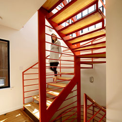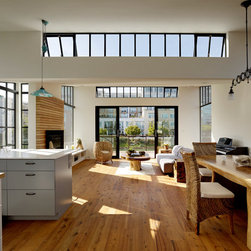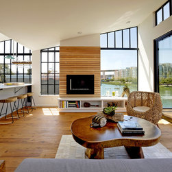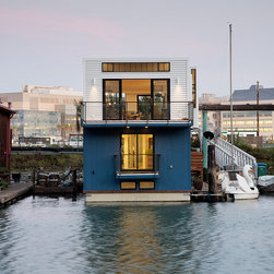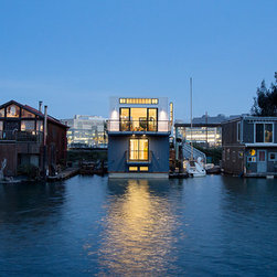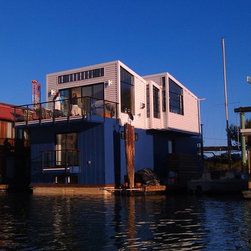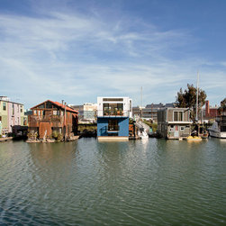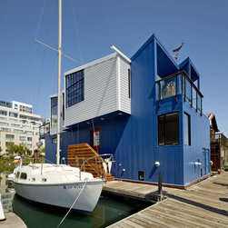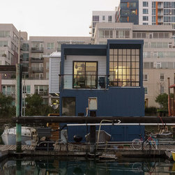 A modern contemporary floating home has been published in major national and internation publications. The home is located on Mission Creek in San Francisco, California with 19 other floating homes. Interiors by Robert Nebolon and Sarah Bertram.