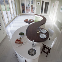 One of Creative Wood’s most famous projects, the Sligo Range is a stylish kitchen unique with its sweeping curved “Music Note” Island.