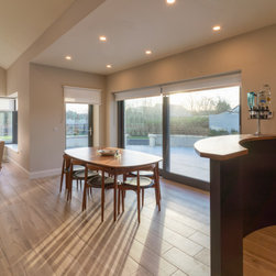 The L-shaped kitchen wraps effortlessly around a large central island, bringing cooking, cleaning, and storage into one continuous sweep. The island itself doubles as both a spacious prep space and a social centrepiece, with ample seating for quick bites or casual chats. The open layout bridges kitchen, dining, and bar areas devoid of obstruction, offering the fluidity of lounging at the island, fixing drinks, or setting the table—without ever stepping away from the conversation.