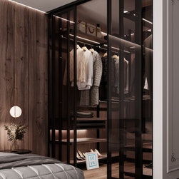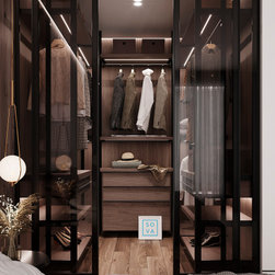 This modern glass walk-in closet will leave no one indifferent. Area 20 sq.m.