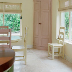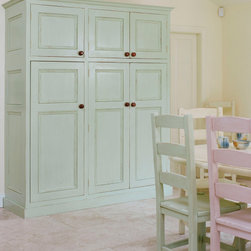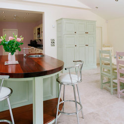 This traditional solid-wood kitchen has been thoughtfully refreshed, finding a second life through hand-painted cabinetry in a soft, uplifting snow mint. The result is a space that honours its craftsmanship while embracing a lighter, more playful expression.
