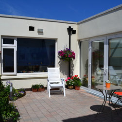 Ground floor reconfiguration / extension to form wheelchair adapted bedroom and bathroom linked to a new kitchen extension with courtyard