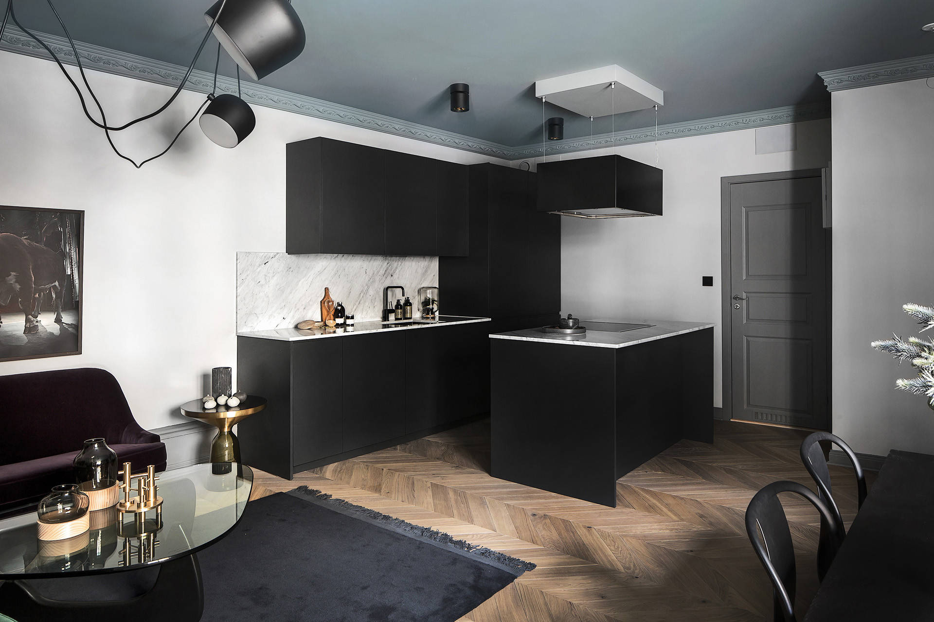 We’re often afraid to go for a strong look in a small space, especially in a room that needs to be practical and functional, but this compact kitchen shows how well it can work.