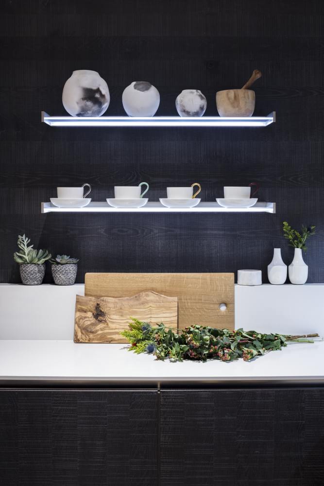 Here, the effect is reversed, with black working more as a surround for the pale wooden door fronts.