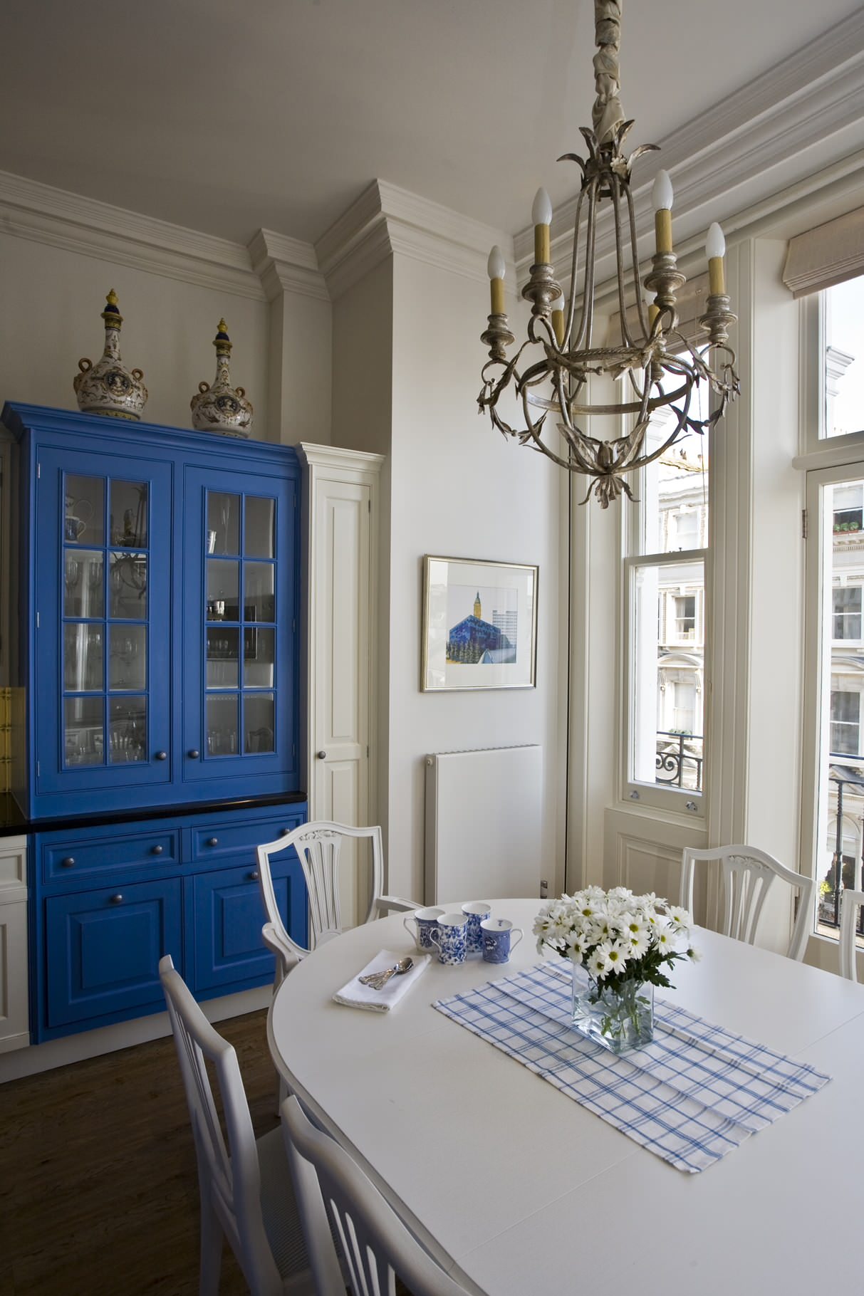 Cobalt blue is certainly a bold choice to use all over a room, so if you want to make a statement without painting each and every wall consider using the shade on a single piece of furniture. The dresser here contrasts nicely with the cream joinery and walls surrounding it, and turns a traditional space into something altogether more fun.