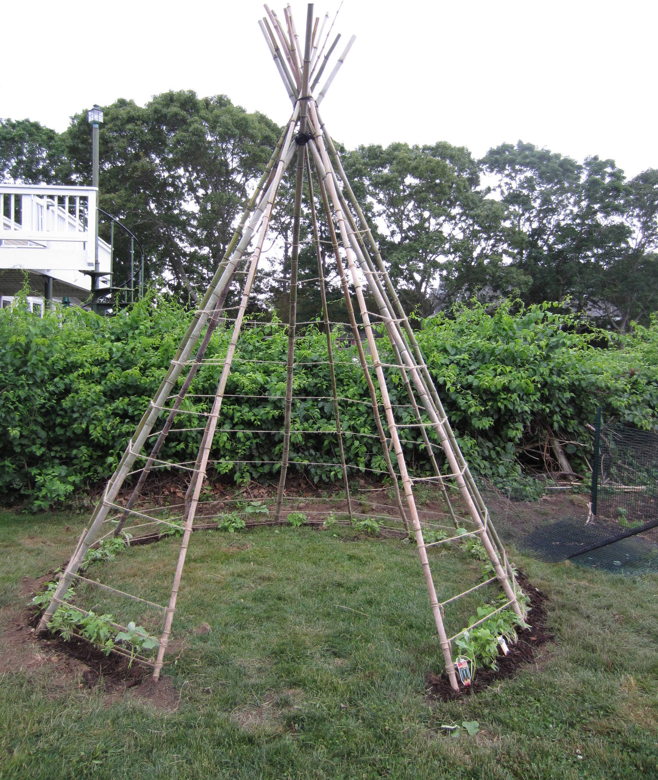 A bean teepee like this is a simple idea that provides both a camp for the kids and a beautiful frame up which you could grow beans. Buy some willow or bamboo canes from your local garden centre and construct a circle, held in place with garden twine. Plant beans at the base and train them to grow up the wigwam.