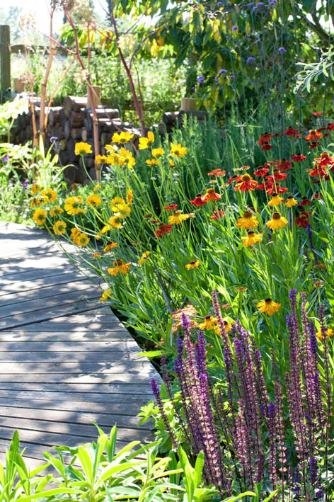 You can’t beat an area of lawn for playing on. It provides a soft landing for practising cartwheels and handstands, a pitch for ball games, or just a place to sprawl. In the surrounding flower borders, choose easy-maintenance plants and shrubs that will stand up to balls and trampling, such as Alchemilla mollis, buddleia and Choisya ternata.