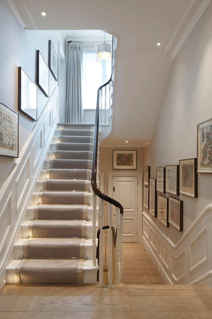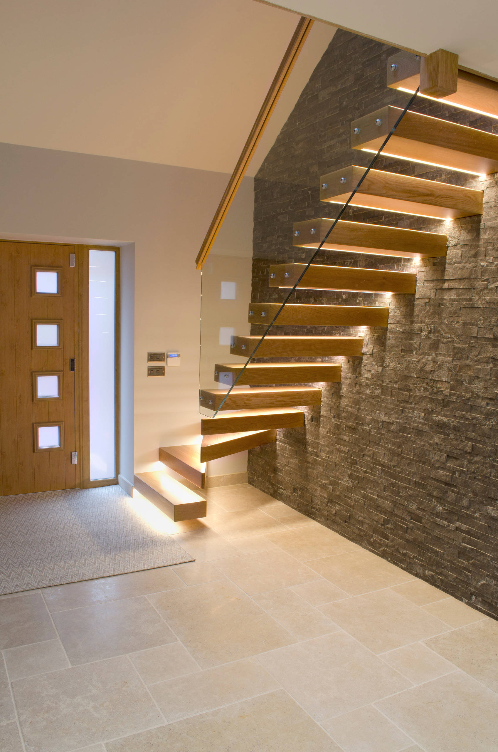 A staircase is a great place to fit lighting that’s both practical and a striking feature, as these examples show