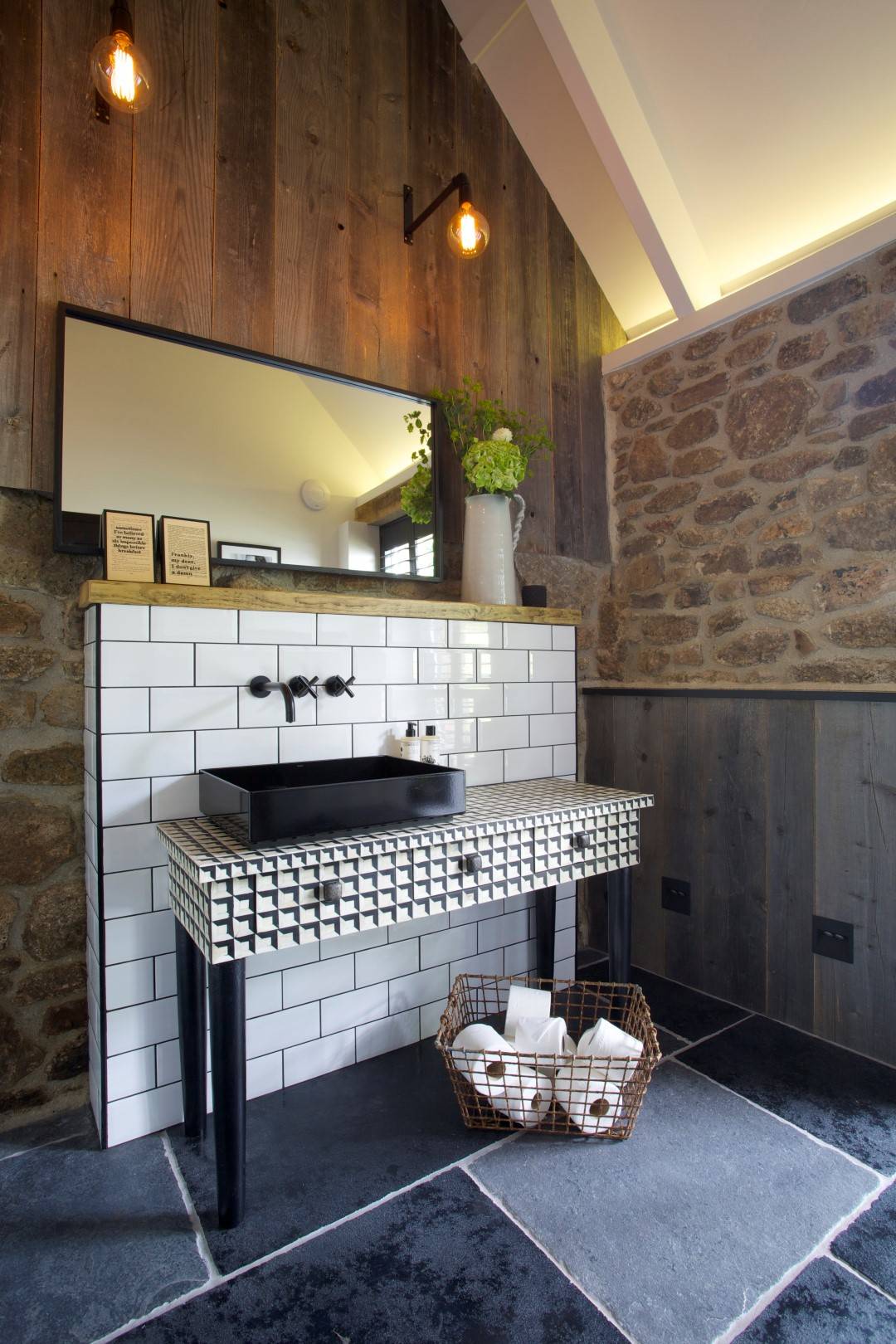 …Or think outside the box – as the owners of this compact but multi-functional bathroom have – and you might yet find room for a shower and separate bath. Look closely and you’ll see the shower turns the far end of the bathroom into a wet room, with a screen separating it from the rest of the room. Clever.