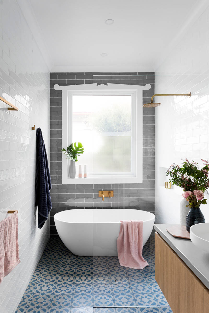 In this bathroom, a folding louvred door is a great addition, meaning the bath can be closed off when a little more privacy is required. Or you could try a half-height wall or a narrow partition to achieve a similar effect.