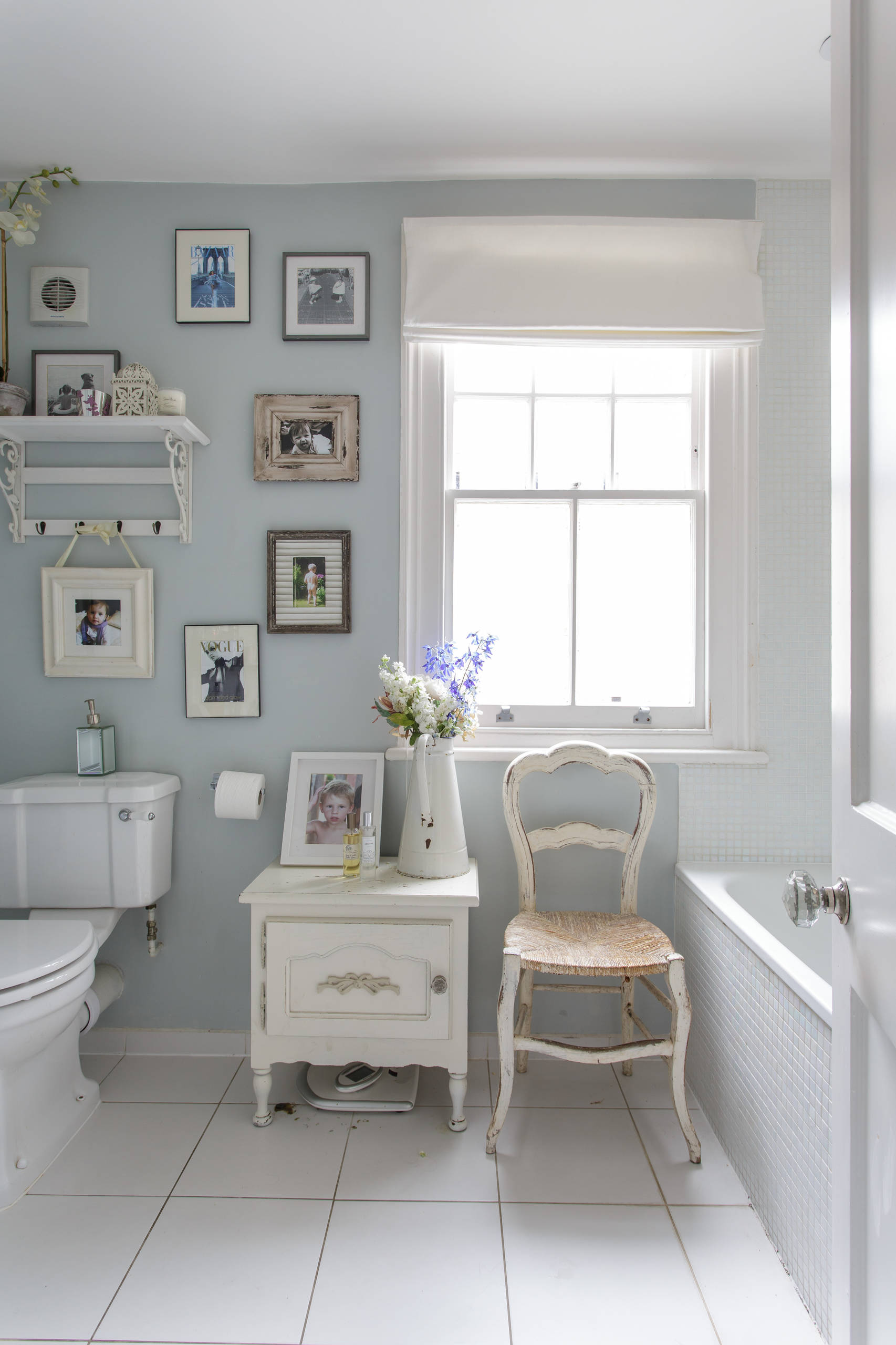 A spotlessly clean bathroom is a wonderful thing; a sterile, soulless one is not. Inject some characterful, vintage appeal in the shape of antique picture frames, worn enamelware and shabby chic furniture – pleasingly pretty against a pale backdrop.