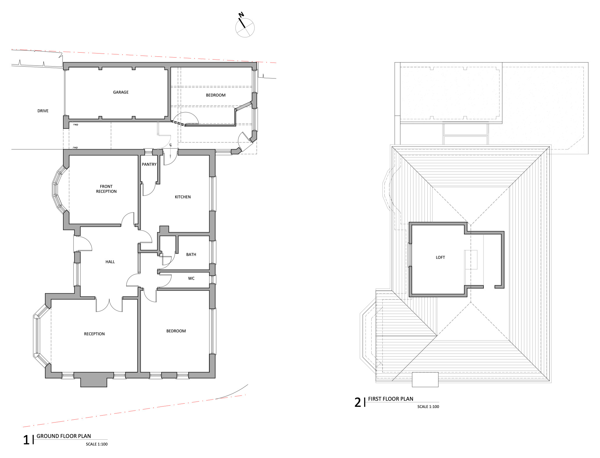 The living room is located where the ‘reception’ room was on this original plan (bottom left).