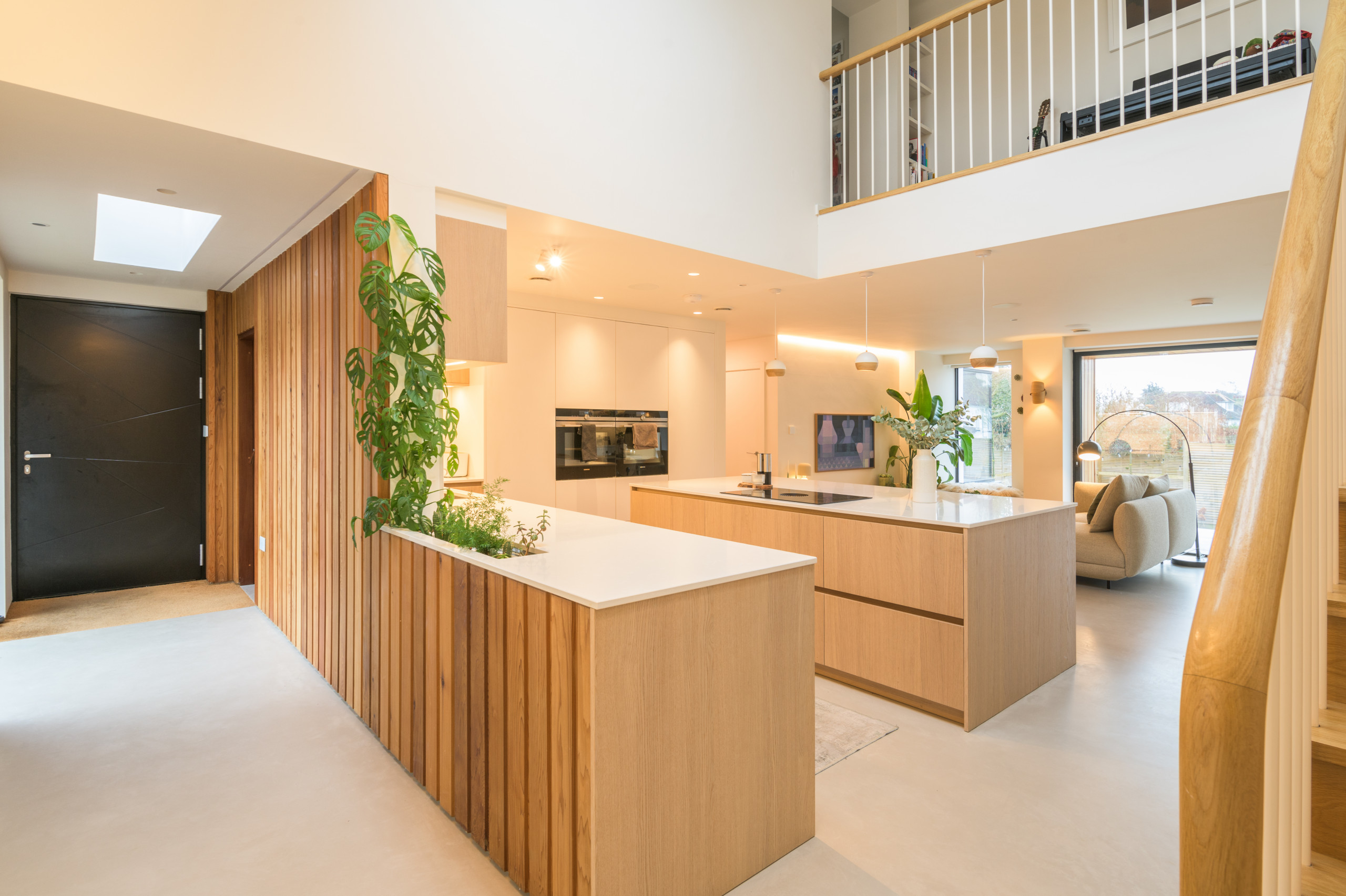 Having created a building that would be low-carbon to live in and run, they called on interior designer Karen Knox of Making Spaces to help them create an interior that would focus on wellness by bringing in lots of light, views and greenery.