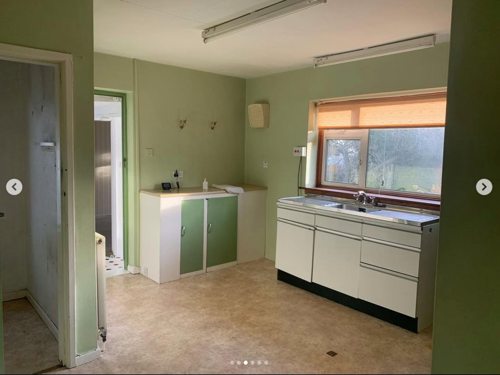 The original kitchen, shown here, was in roughly the same location as the new one, but the external walls have all been moved.