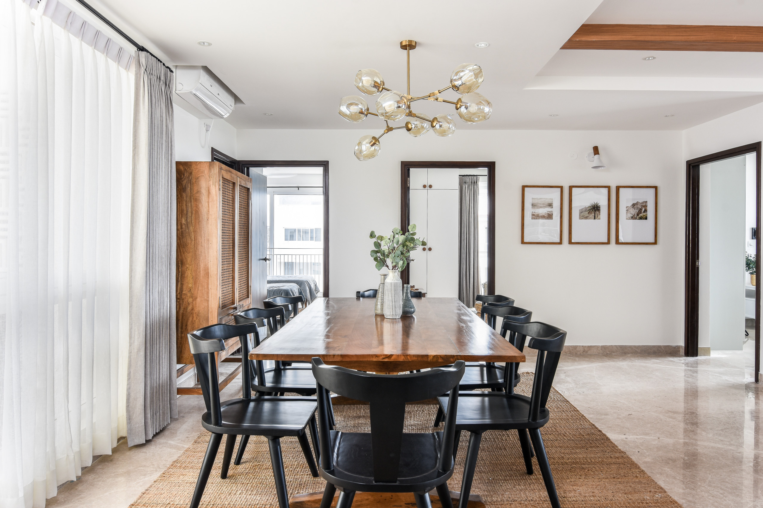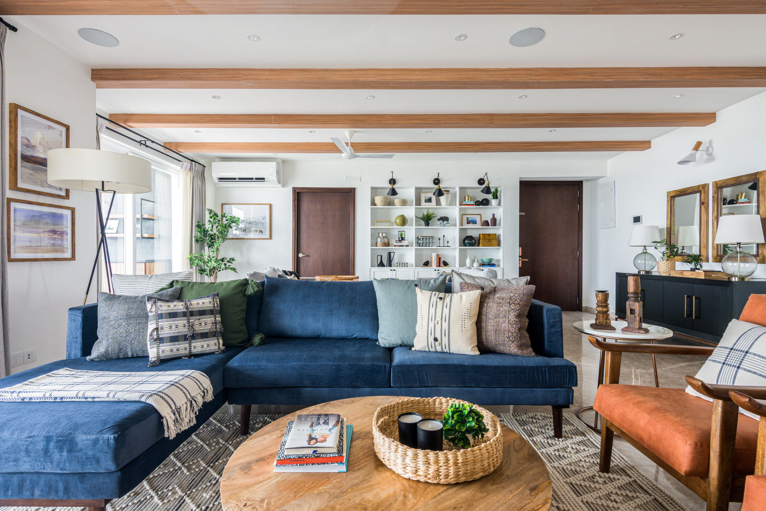 “For instance, the black credenza at the entrance adds a modern touch, the accent chairs in the living room smack of midcentury sensibilities, while the block-printed fabrics and Nagaland accent cushions infuse an ethnic, local flavour,” she says.