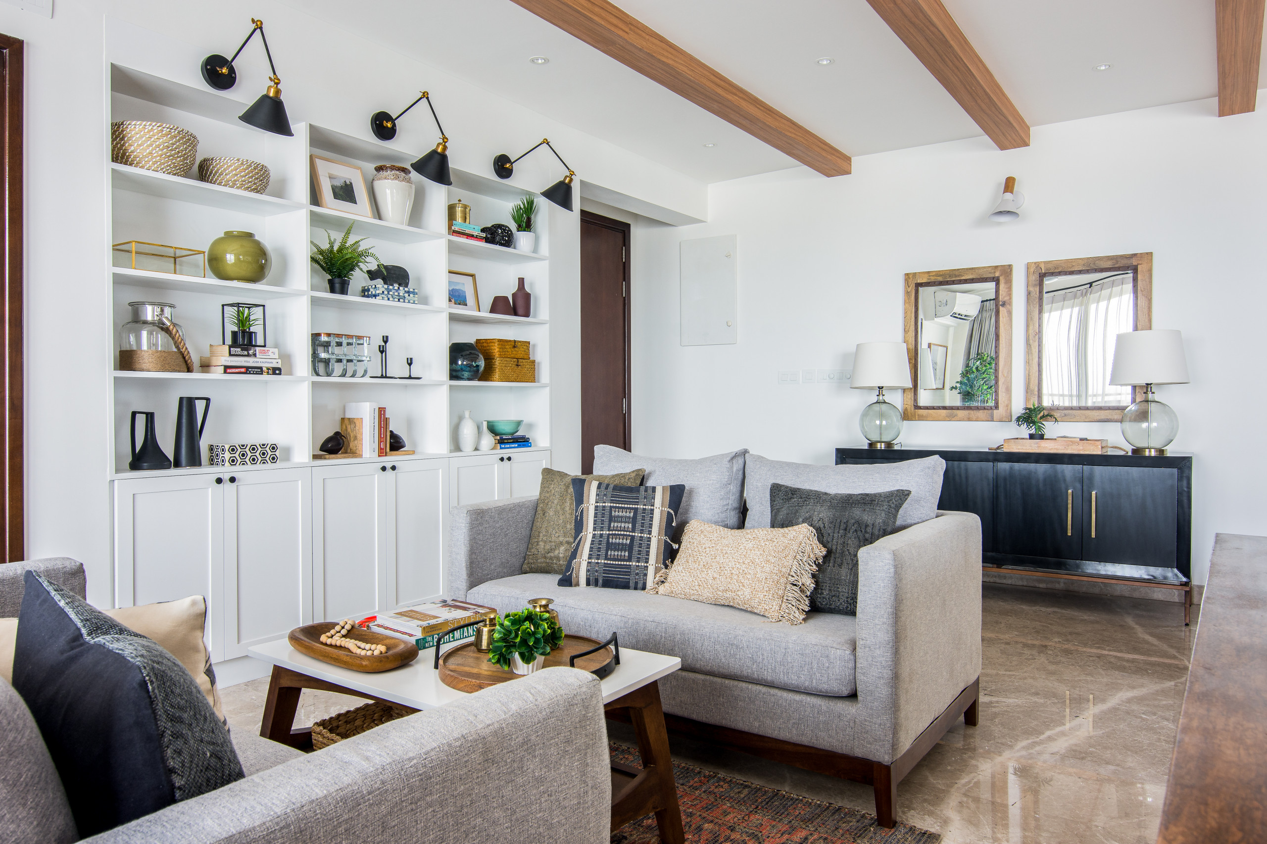 “We placed a console table behind the sofa to divide the formal and informal sections. We kept the design language organic and free-flowing, and combined various styles, to give the home a lived-in feel,” Sunita explains.
