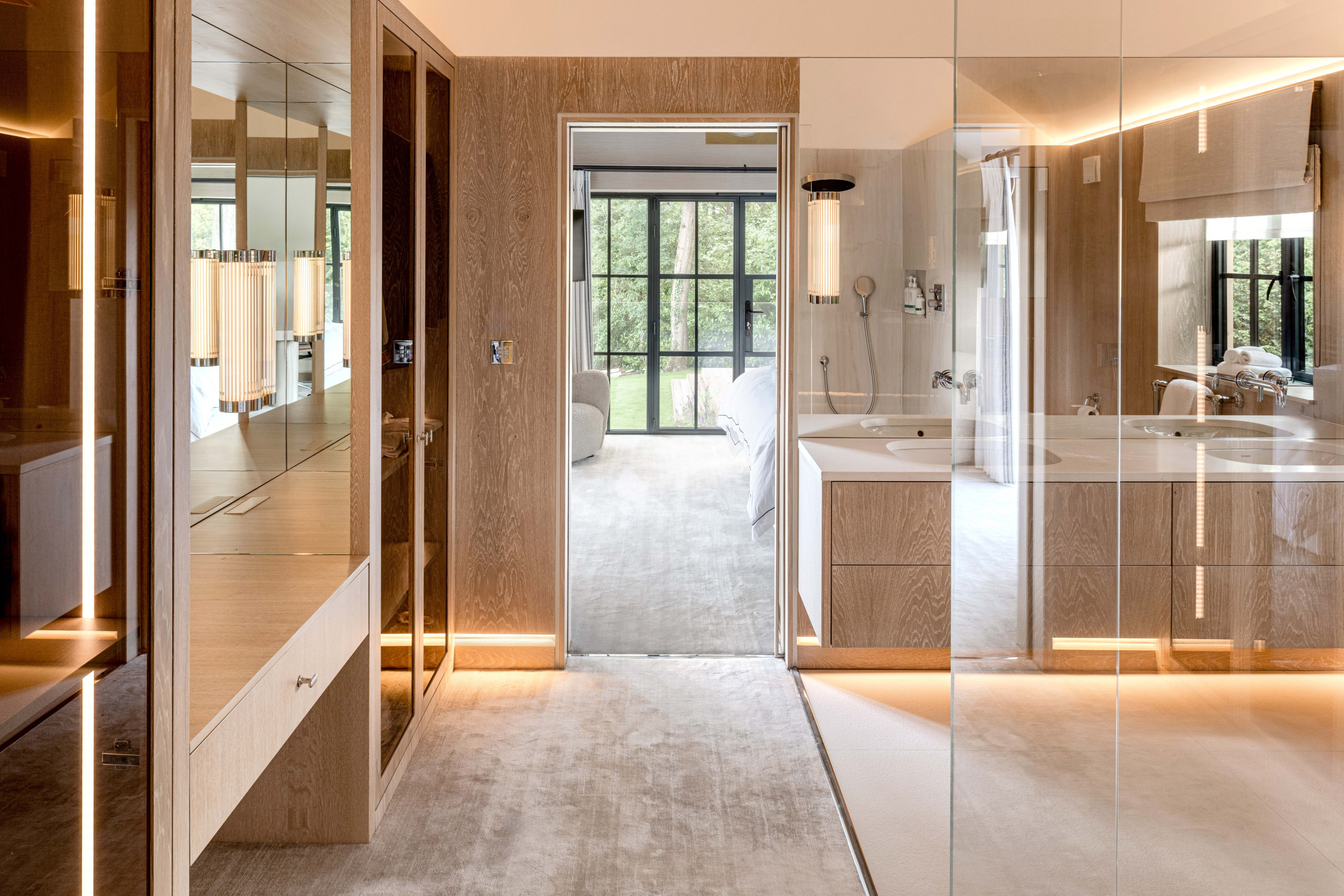 The owner wanted a more contemporary feel for the main suite in the extension, which Paul achieved through striking lighting design featuring indirect lighting from concealed LED channels. The en suite bathroom/dressing room also has minimalist joinery and wall panelling.