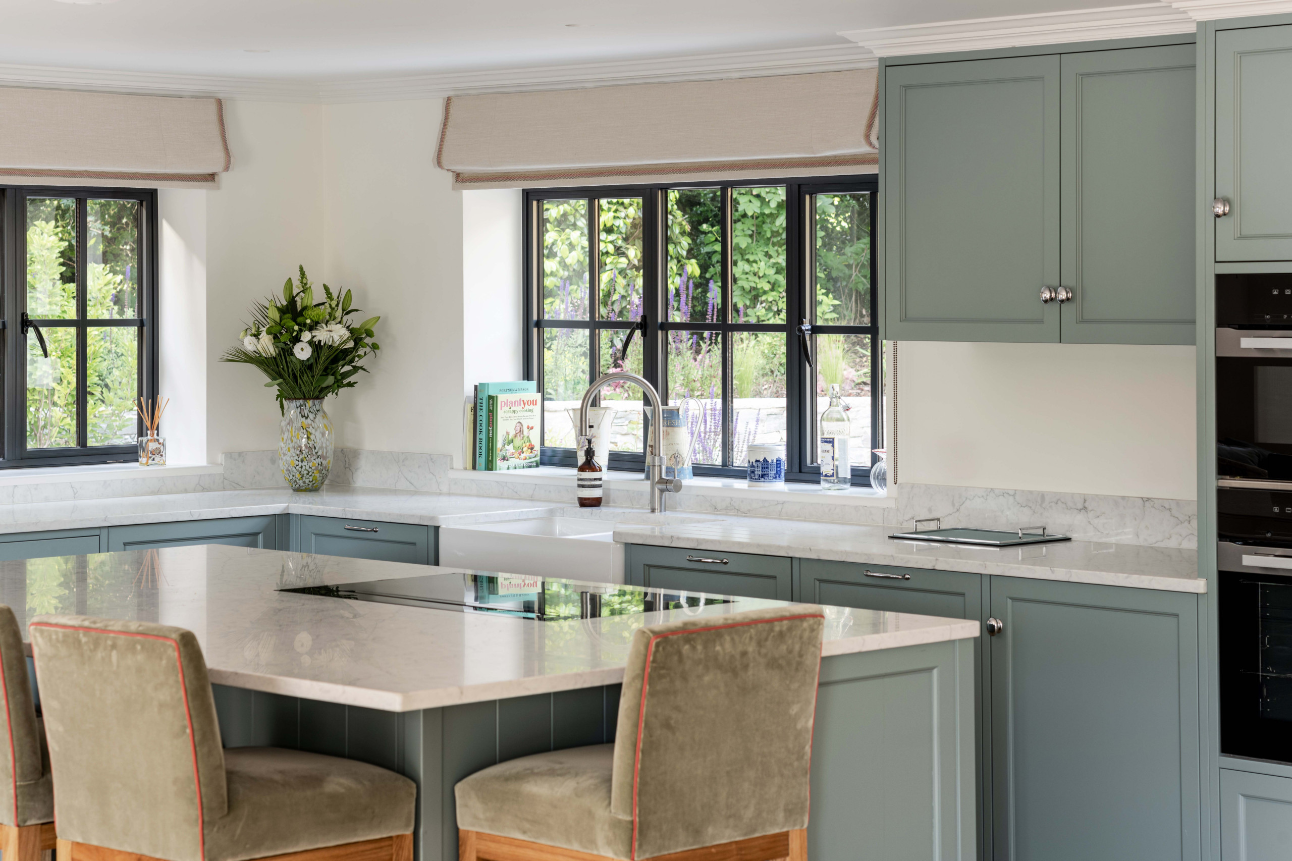 Kitchen, Woodstock Furniture; painted in Oval Room Blue, Farrow & Ball.