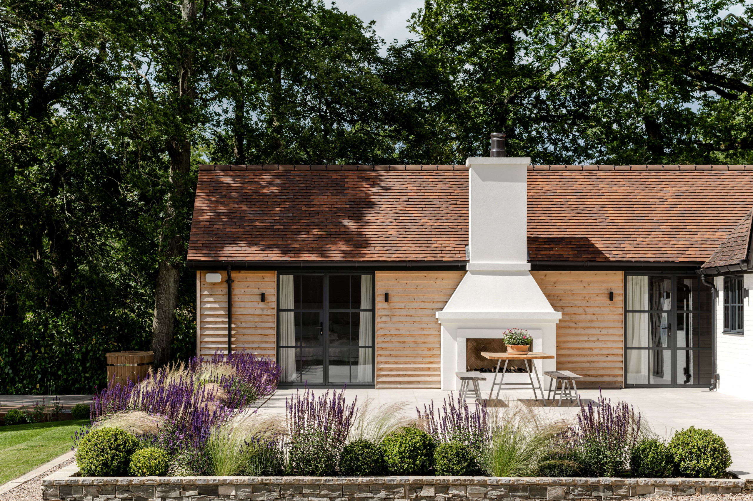 The extension was another design element that grew in scope. Originally, the owner liked the idea of an independent, prefabricated oak structure on the land that could function as a home office. Then Paul suggested seeing what else they could achieve.